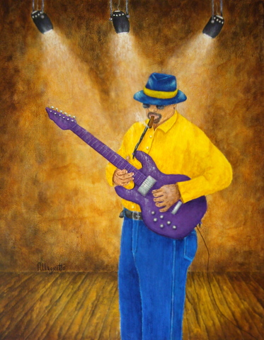 Quality Giclee prints from greeting card size to poster size, mugs, tote bags, pillows, etc. are available at: https://fineartamerica.com/featured/jazz-guitar-man-pamela-allegretto.html