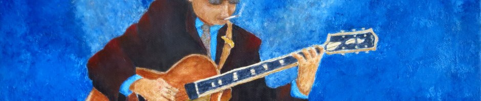 This is my caricature to honor jazz guitar great Jim Day. I took artistic liberty adding shades and a cigarette, just to keep it not-too-serious. What is serious, is Jim’s remarkable guitar chops playing jazz, blues, classical, and classics.