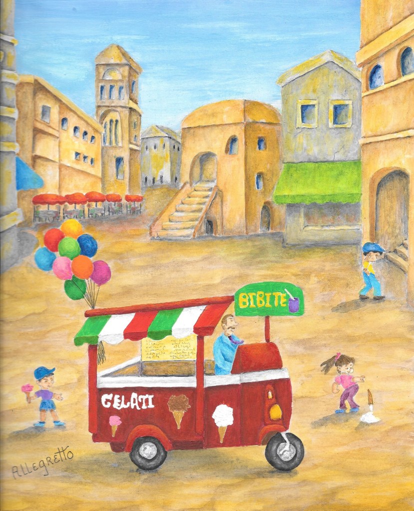 Francesco Onofrio, named after Francesco Procopio the Sicilian fisherman from the 1600s who is said to have invented gelato, is the gelataio in the Campania Region in Southern Italy. Today at his final stop he sold out of gelato, much to the disappointment of Marco, Pietro, and Rosalina. Marco wanted chocolate but had to settle for strawberry, Rosalina dropped her vanilla cone, and Pietro walked away empty-handed. The good news is that Francesco has promised these three disappointed children that he will return tomorrow and make things right. Cheers to Francesco!